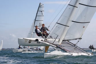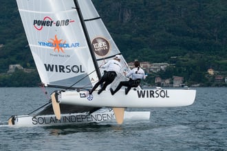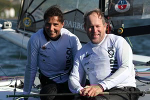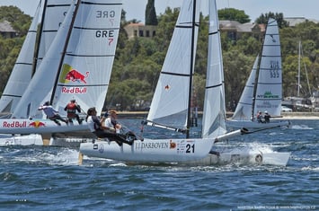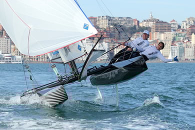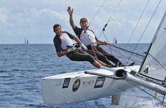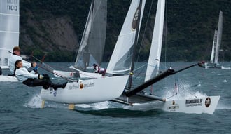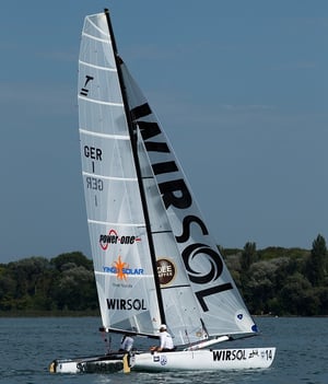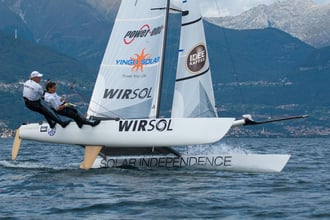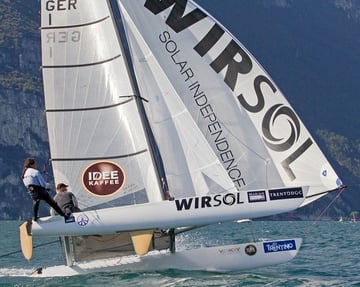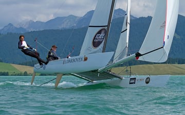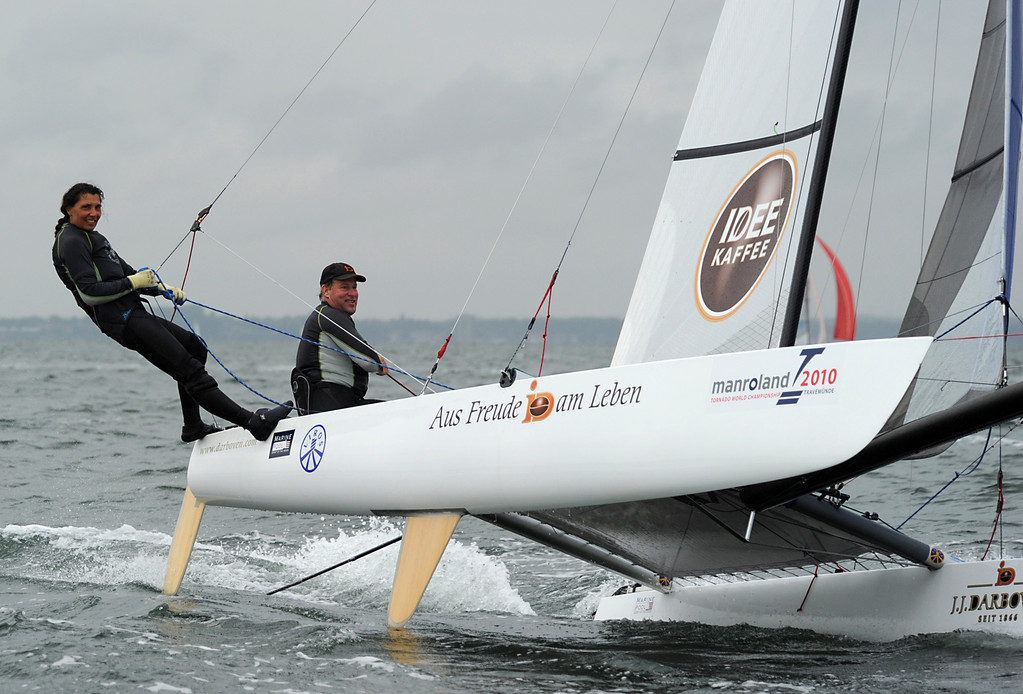 TeamGaebler und Partner J.J. Darboven übernehmen nach sensationellem Segeltag die Führung bei den Tornado-Segel Weltmeisterschaften.