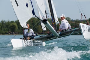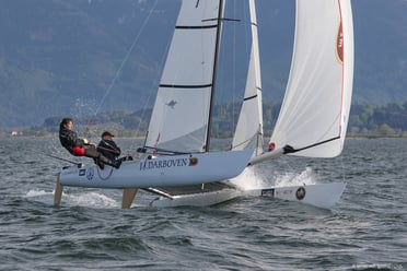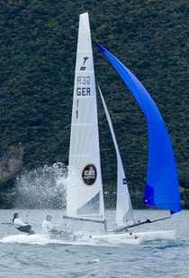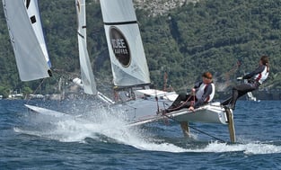 Foto-Finish nach aufregenden Rennen bei der Tornado EM am Gardasee. Erneut Platz 2. für TeamGaebler.