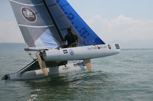 Mit 73,9 km/h unter Segeln über die Kieler-Förde mit der Hydroptere